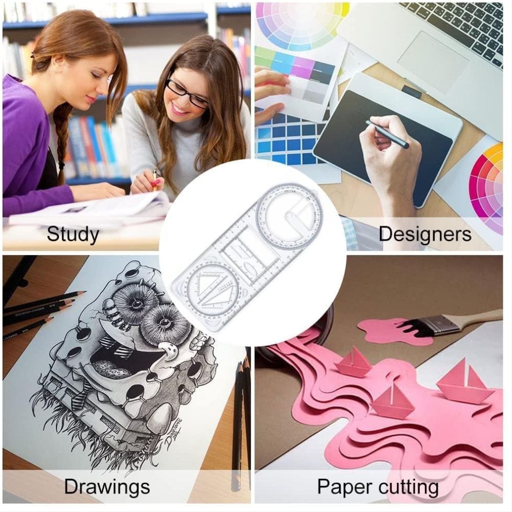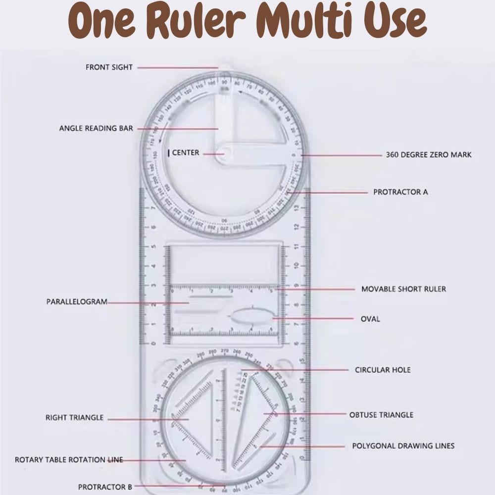 ✔ Multi-Purpose Design – Combines multiple rulers, protractors, and measurement tools in one.